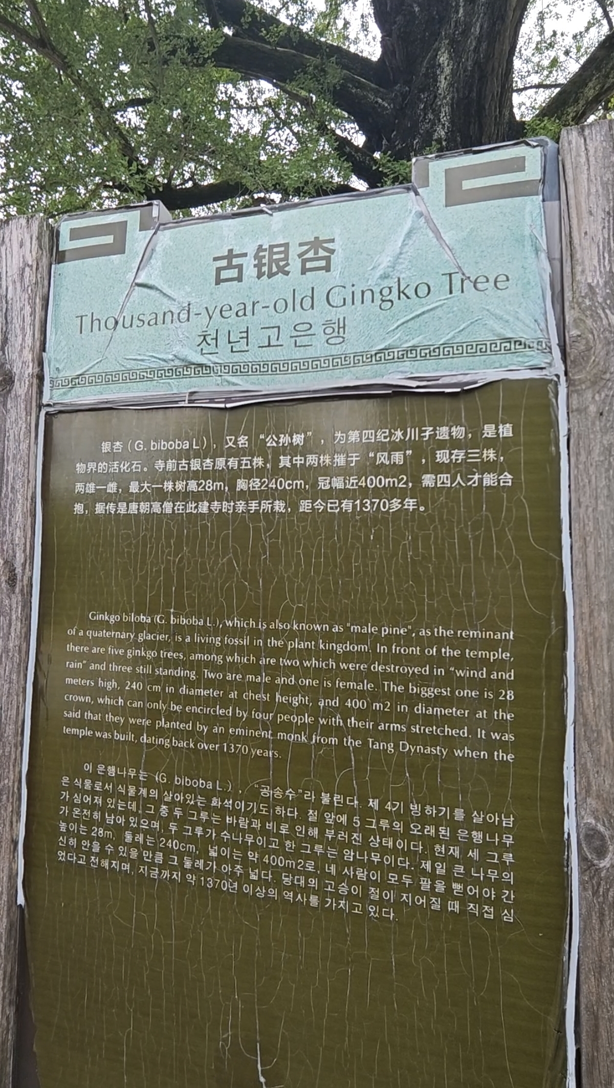 下个景点就是河南的法眼寺了,下午1点多到达。刚到寺前最吸引眼球的莫过寺前的一棵古银杏树,树牌介绍树龄1370多年,原有5棵大现存3棵。人生起起伏伏不过百十年,而古树一晃就是千年,一定要形容不应说是经历多少春秋,而是经历过多少朝代。任朝代的起伏兴衰,风风雨雨,只是默默静静矗立于此,看繁华落尽,大地重生。