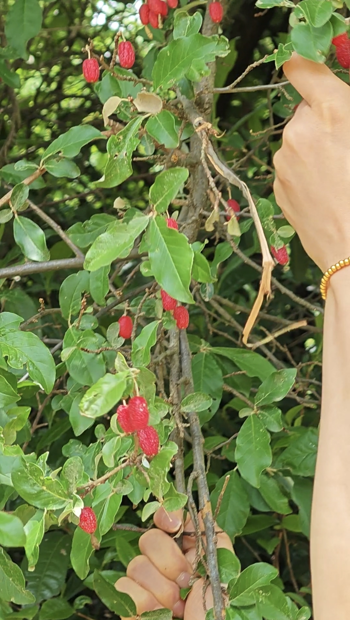 调头回走再错,吃货老婆眼尖在车上发现了我们当地一叫“八冻瓜”的种野果,于是先不管玩不玩了,下车摘果子吧。