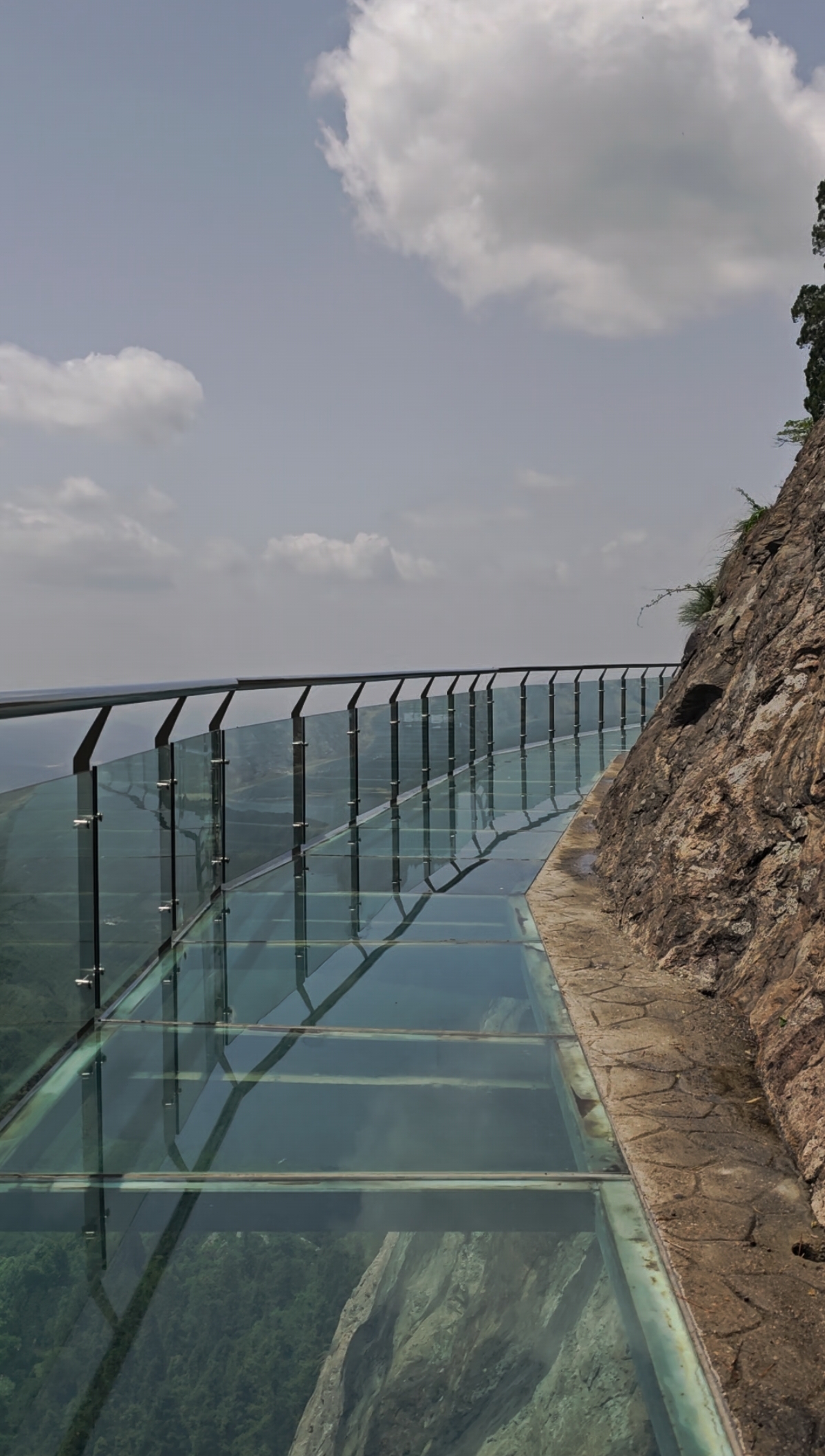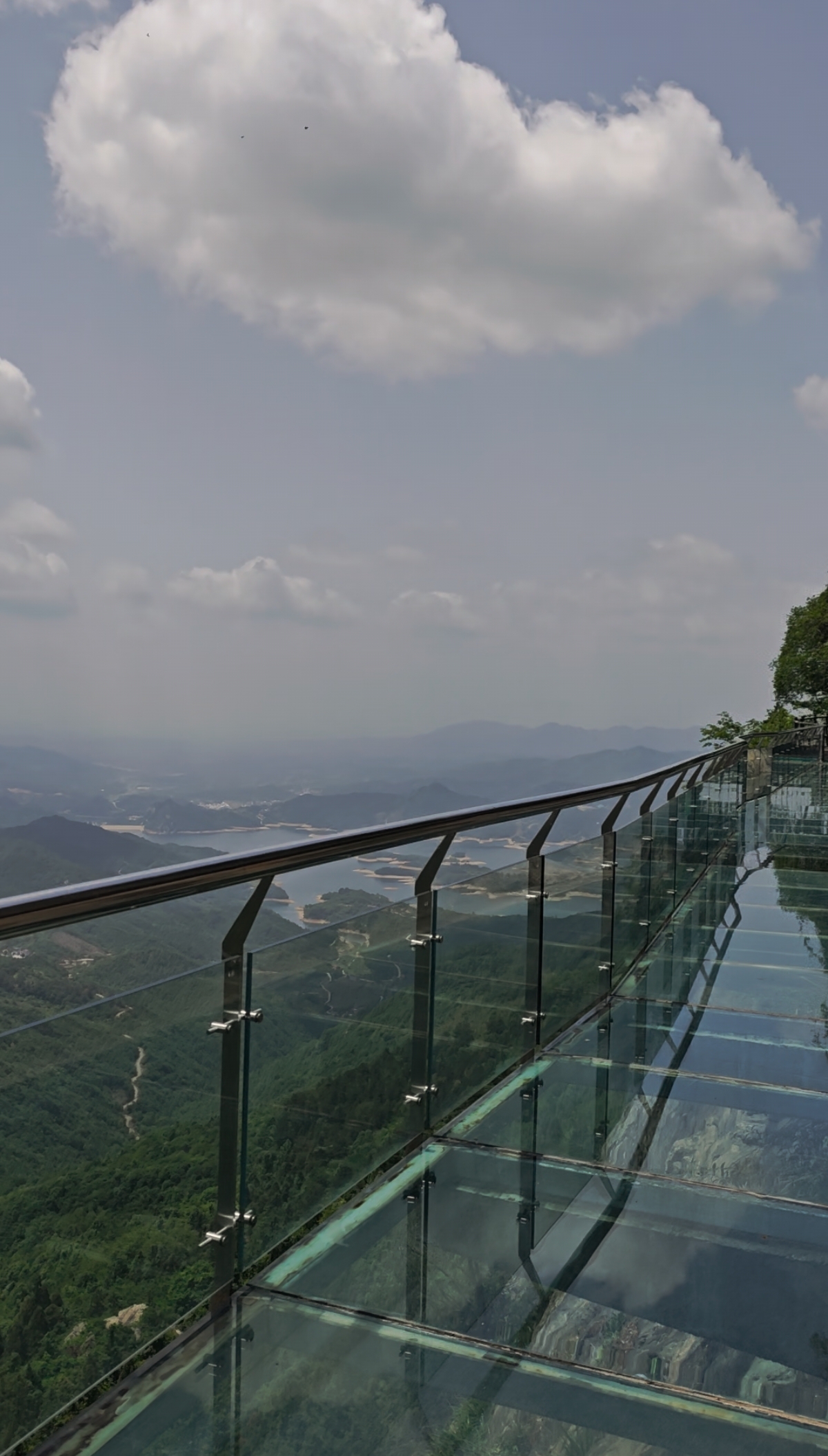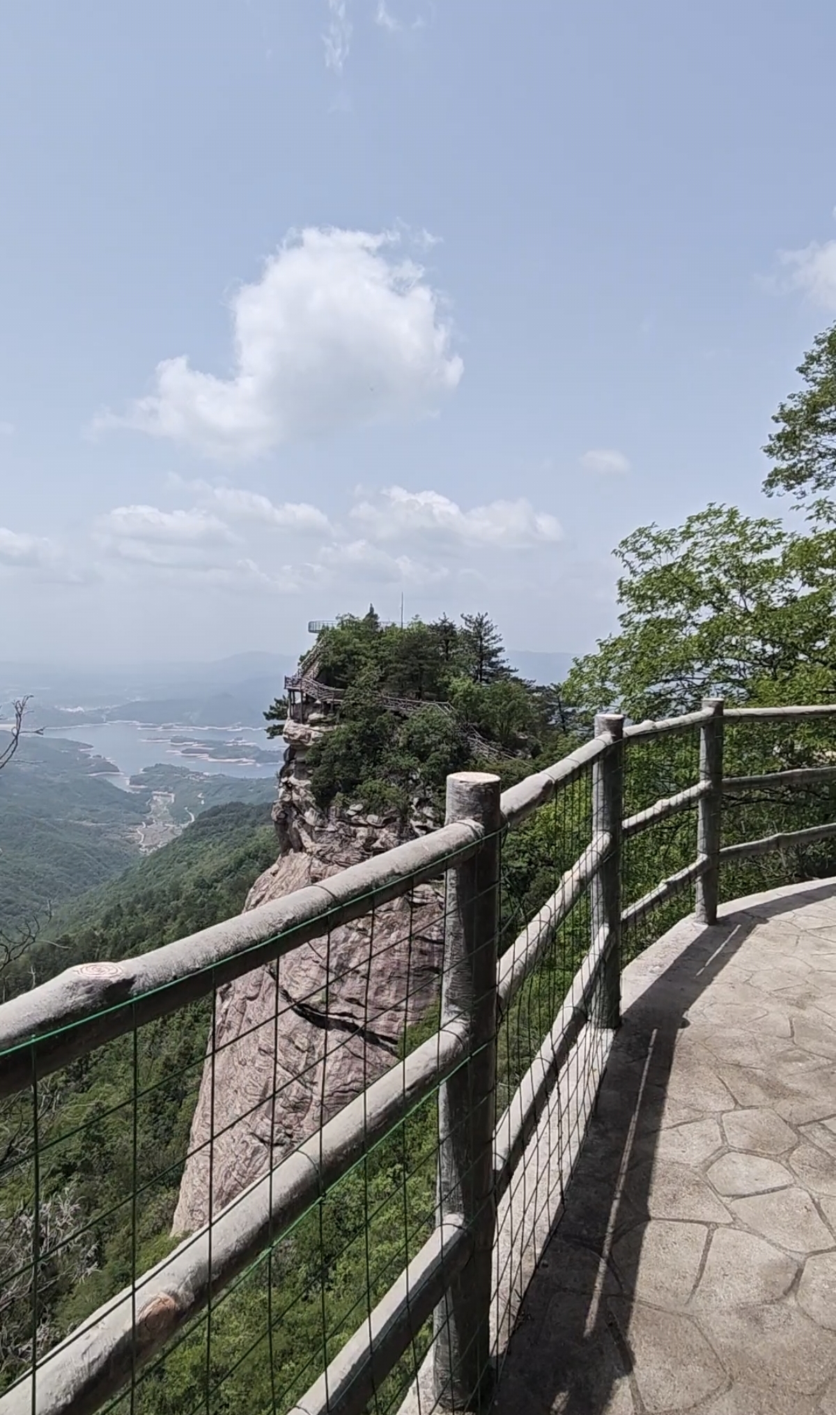 再向前走些时就到了狮子峰风景区大门,50元一张门票,进大门再开一小段路的车,看到提示狮子峰入口的一块大牌子,沿着石台阶向上,两边都是松树林。狮子峰主要景点有玻璃栈道和天空之镜。从天空之镜回来经过峨山寺,没有进去看。相当是绕了一圈回到来时的狮子峰入口,在入口向下走还有吊桥景点,感觉比较平常就没下了。狮子峰景点比较少吧,50元门票可能稍微高了点,但风景确实不错,还是值得一看的。我们在此逗留了一个多小时,也算是身处美景中不愿意挪步吧。此时已12点多了,有点饿意,于是我们把刚刚摘的野果,全部吃光了,下车我把吃的果核当成种子撒到树林里,希望能长出果树来,你觉得可能吗。今天的狮子峰感觉是被我和老婆两个包场了,好像就我两人,应该是这里太偏远了,节假日时应该人会多点吧。